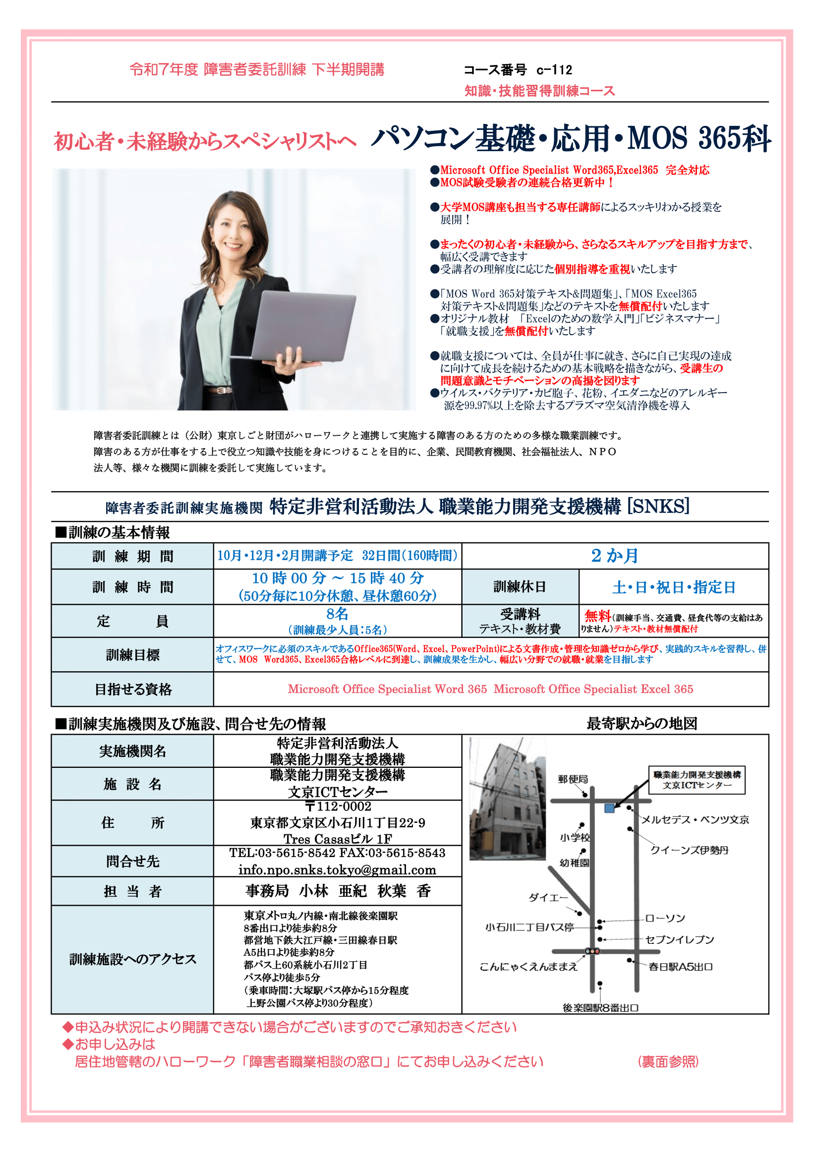 東京しごと財団障害者委託訓練 [SNKS 文京ICTセンター]