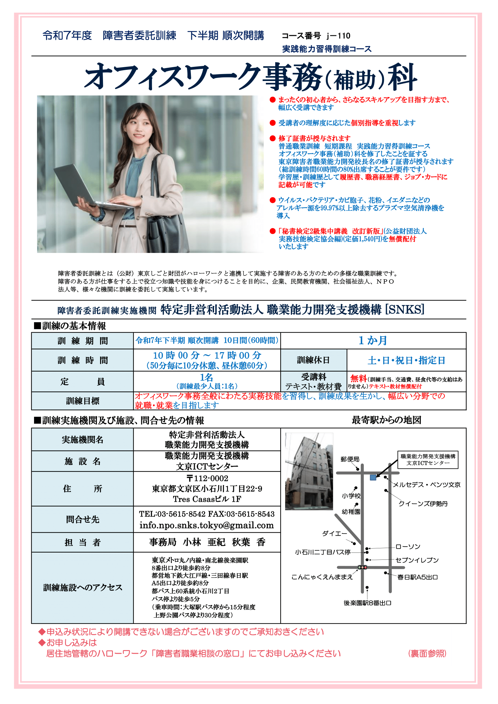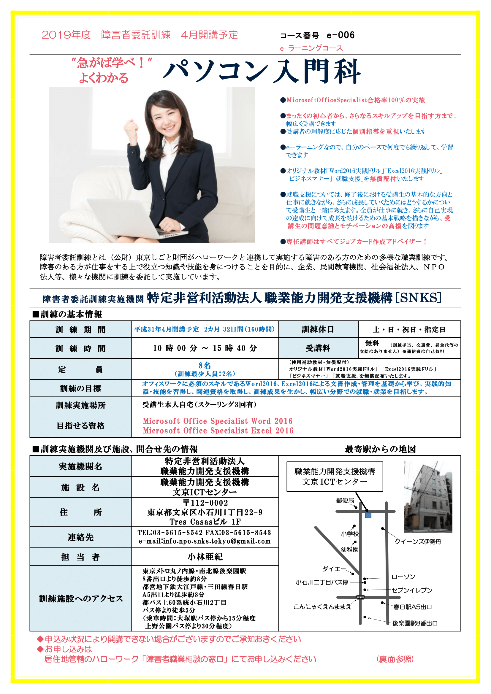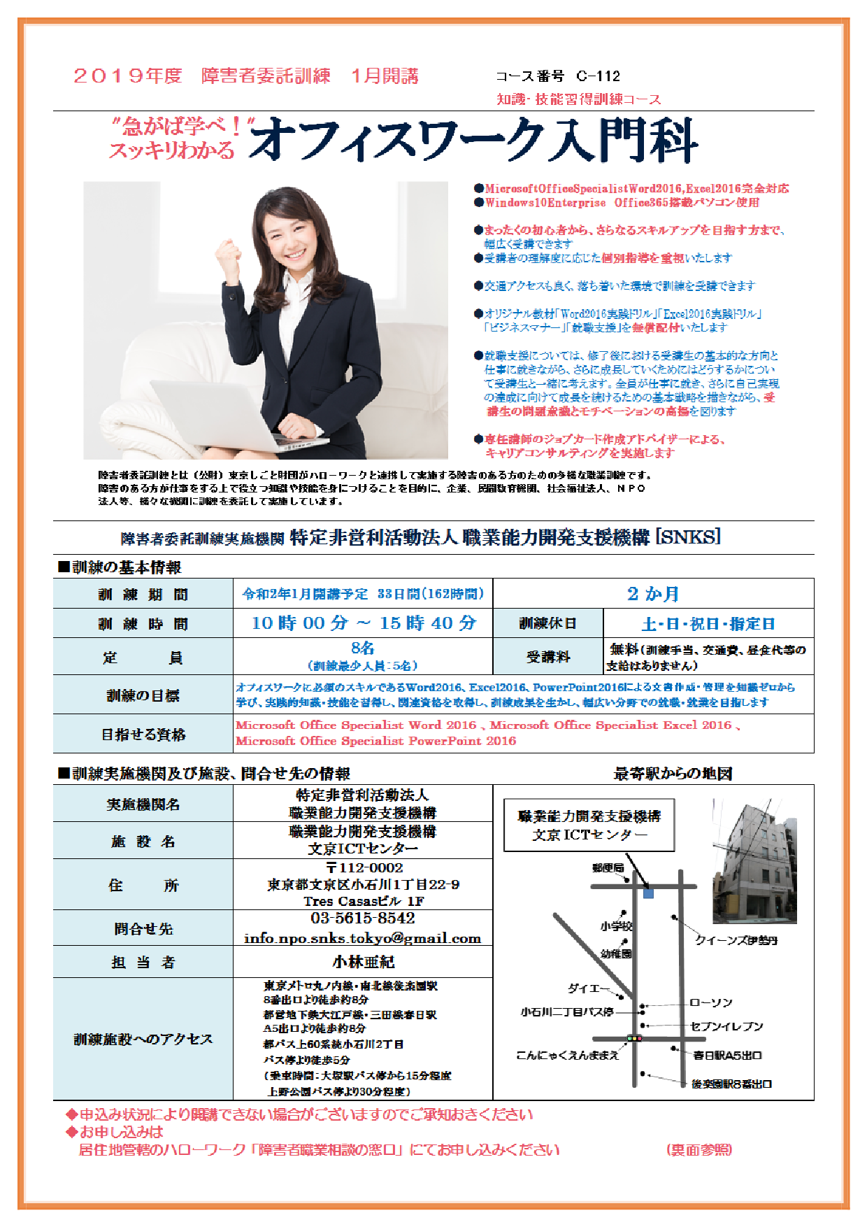 東京しごと財団障害者委託訓練 [SNKS 文京ICTセンター]