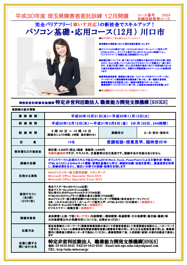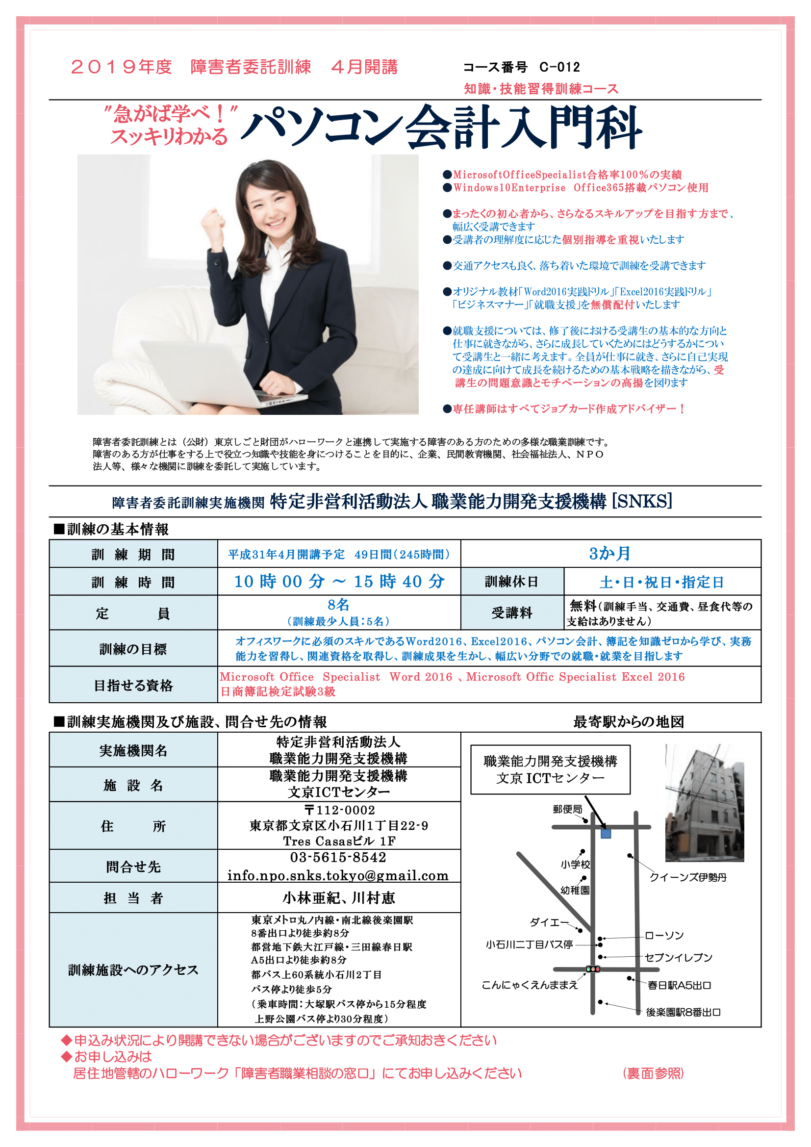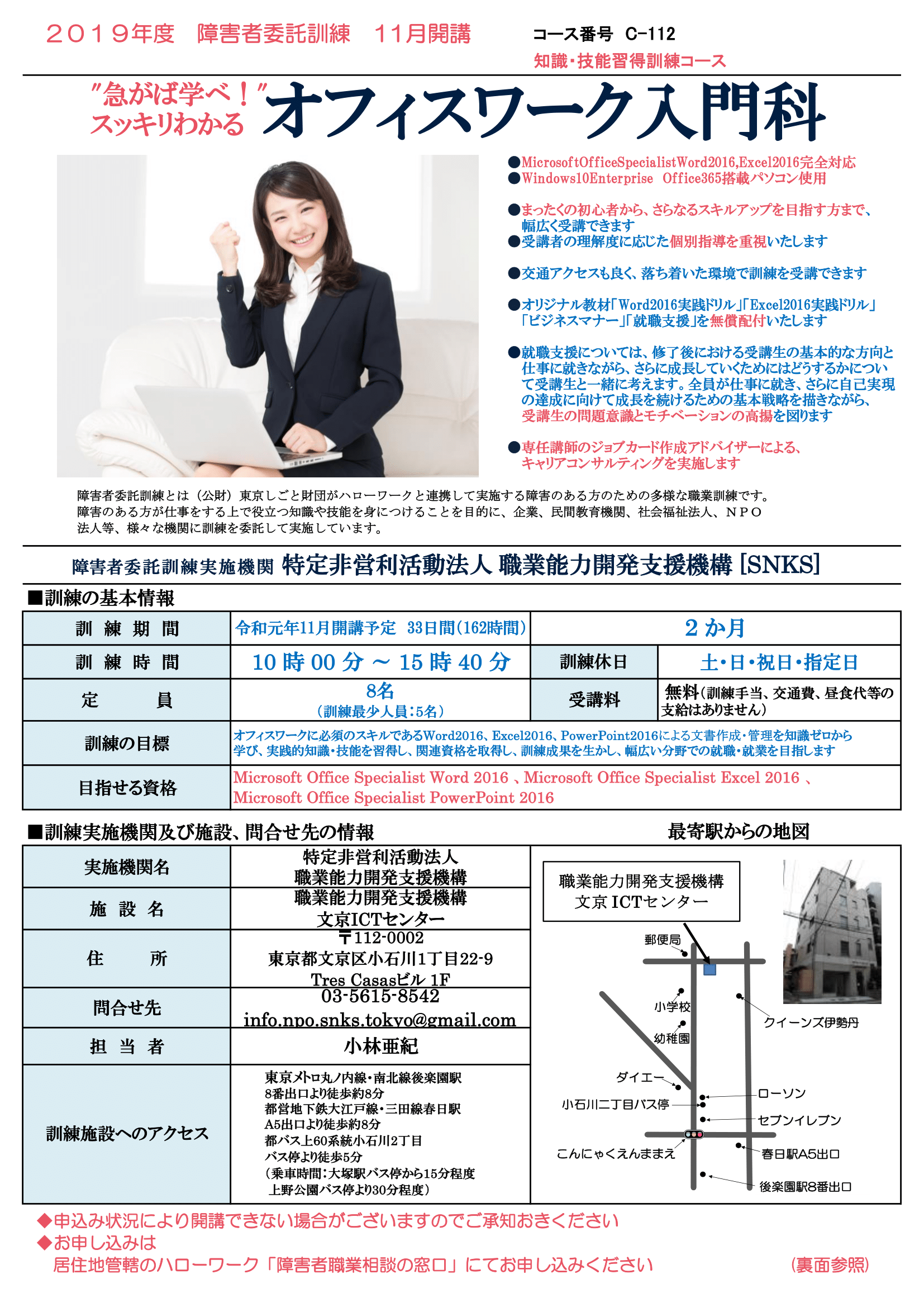 東京しごと財団障害者委託訓練 [SNKS 文京ICTセンター]