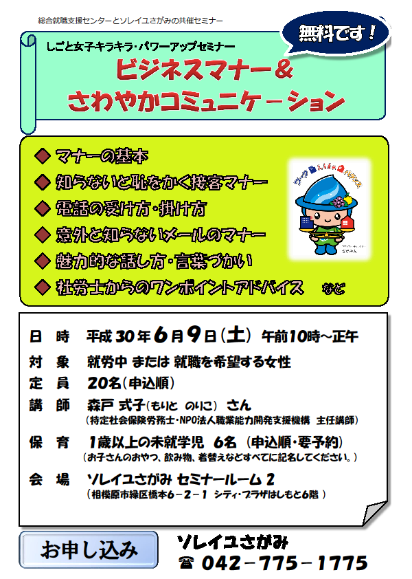 ビジネスマナー&さわやかコミュニケーション ソレイユさがみ (森戸 式子講師)