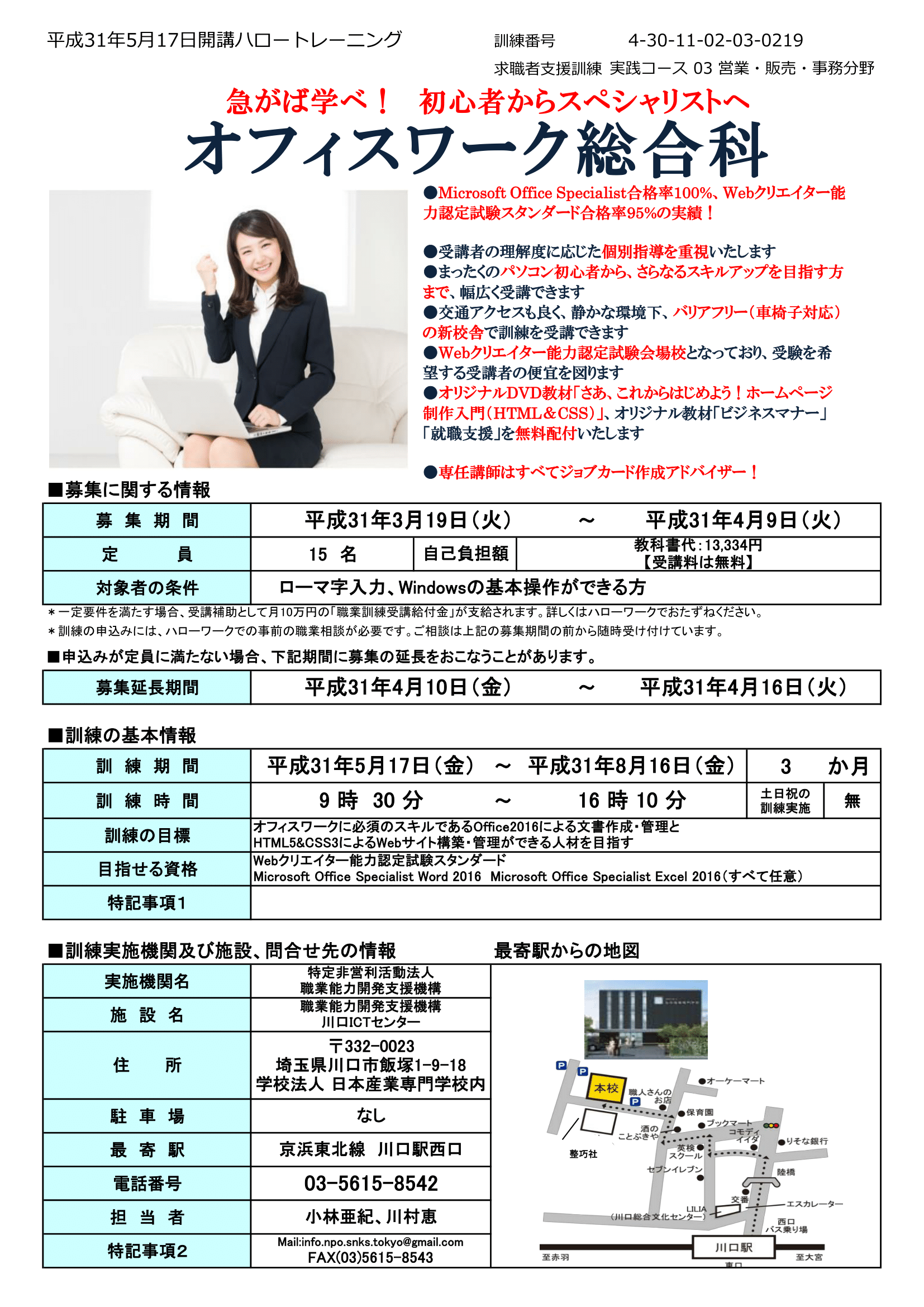 募集締切 初心者からスペシャリストへ! オフィスワーク総合科5月生