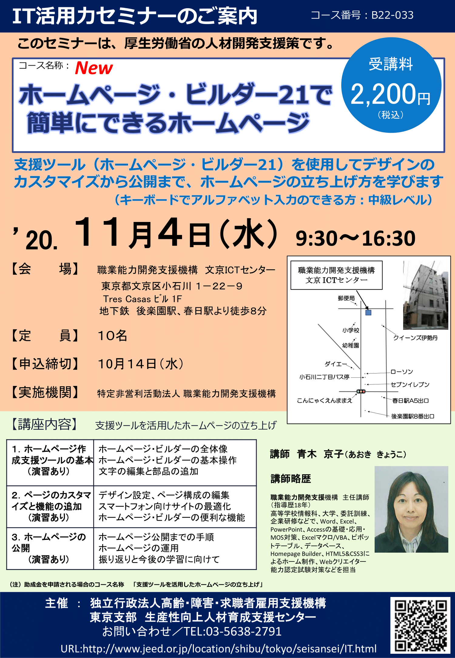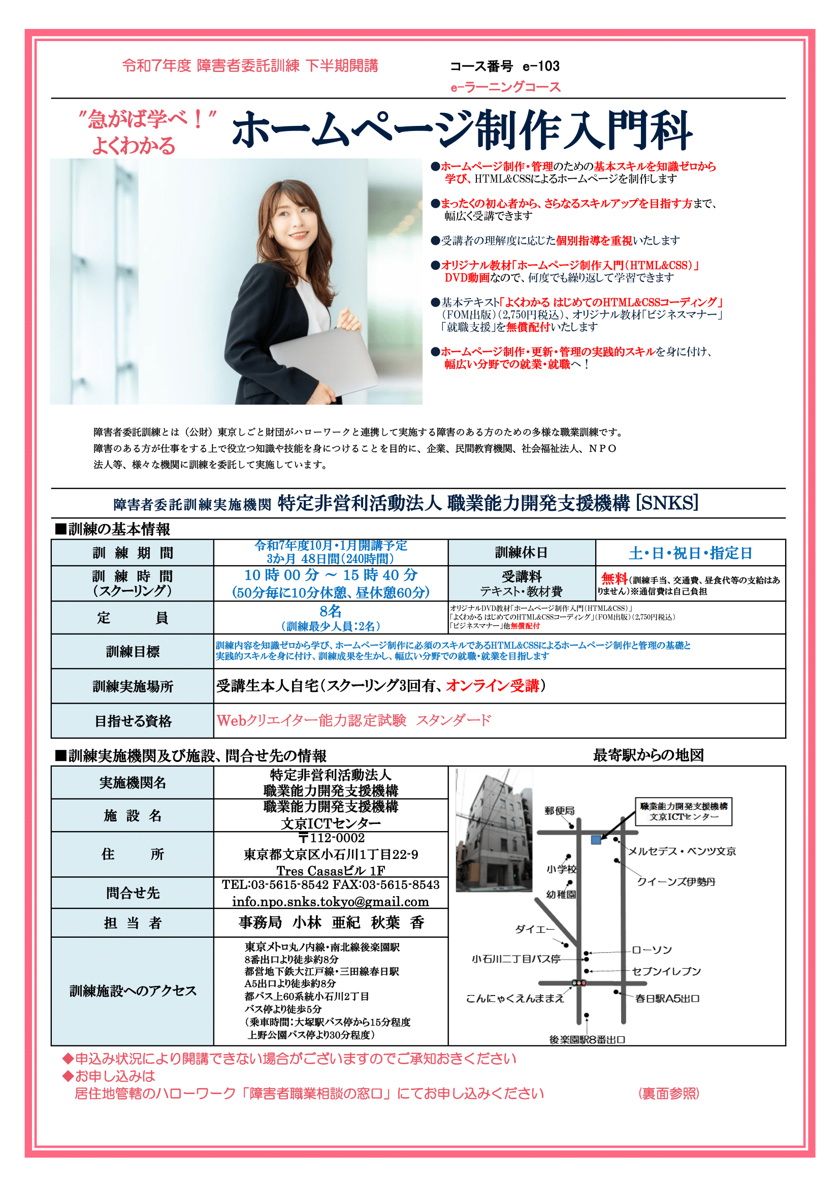 NEW!教材パワーアップ 令和7年度下半期10月開講受講生募集中 e-ラーニングコース "急がば学べ!" よくわかる ホームページ制作入門科 東京しごと財団障害者委託訓練