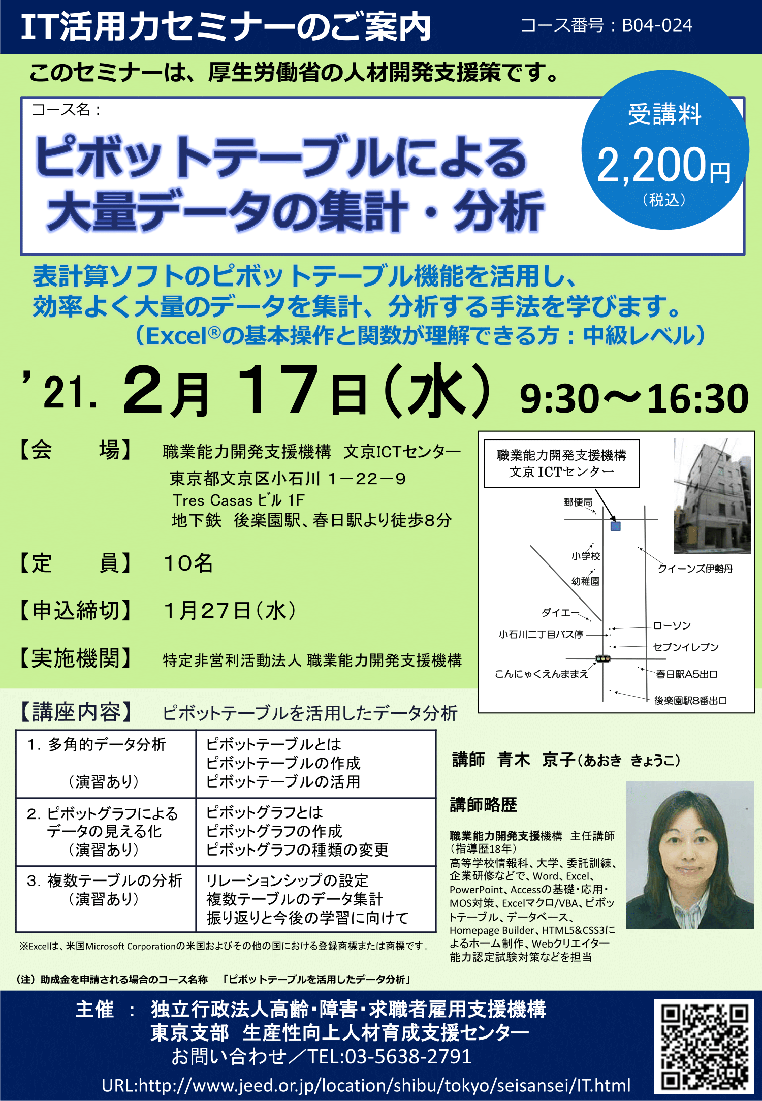 好評裏に終了しました IT活用力セミナー ピボットテーブルによる 大量データの集計・分析