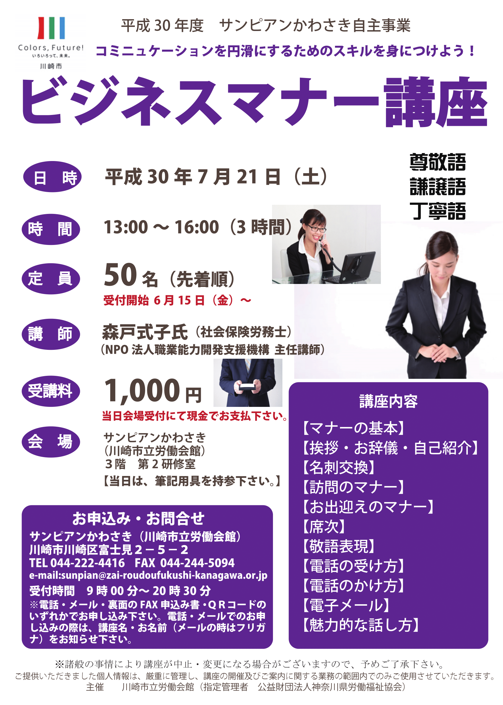 7月21日(土)好評裏に終了しました ビジネスマナー講座